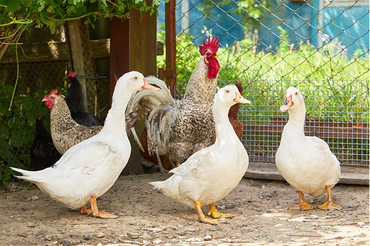 Pest Patrol: Chickens love to scratch and peck, helping control insect populations. Ducks are also adept at insect removal.